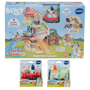 Drive from the Heeler house to the beach, school and more! Zoom past favourite characters and moments from the show while listening to Bluey talk by pressing her head button or driving over the 4 SmartPoint locations.